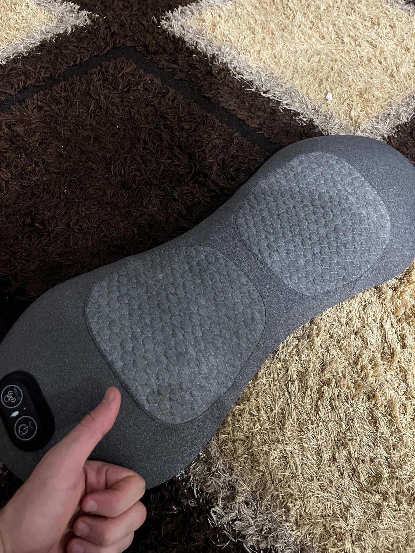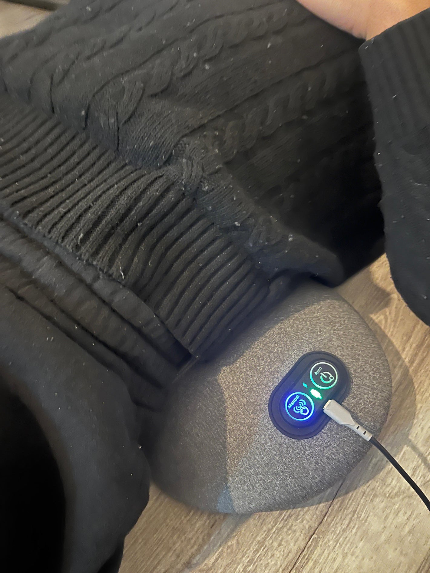 Die Steuertasten leuchten auf und bestätigen: Bereit zur Nutzung. Lege den Massager auf eine flache Oberfläche wie Boden oder Bett.