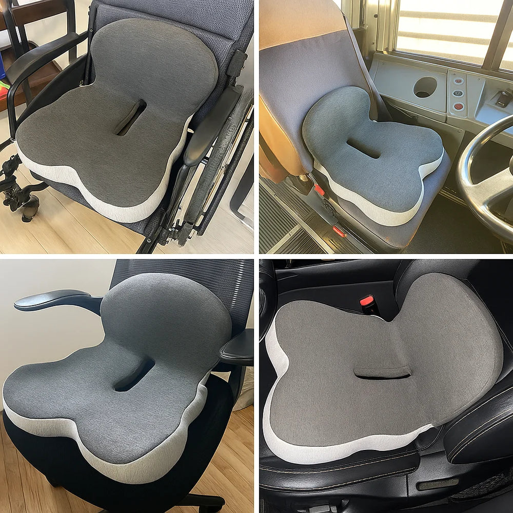 Der hochwertige Memory-Foam passt sich jeder Körperform an, fördert eine aufrechte Haltung und reduziert den Druck auf Wirbelsäule und Steißbein – ganz ohne Anstrengung.